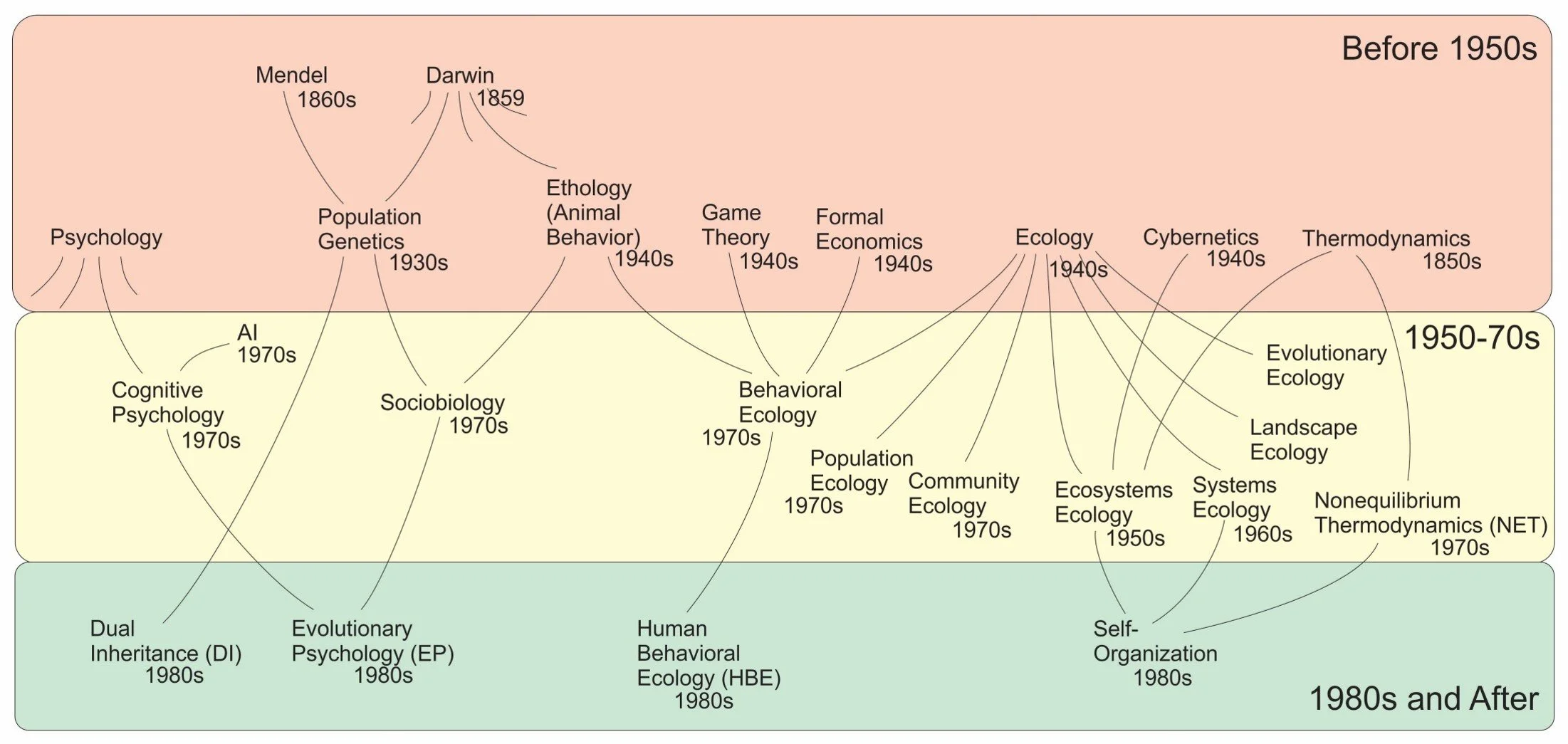 In my graduate seminar on evolutionary theory in the 1990s, taught by the archaeologist Bill Keegan, we all discovered together the new cultural evolution. Keegan was trained in evolutionary theory by Allen Johnson and Tim Earle at UCLA. There he also learned of the human behavioral ecology (HBE) of Winterhalder and Smith, and wrote an article for the American Anthropologist titled “The optimal foraging analysis of horticultural production (1986).” In our seminar class, we explored the HBE of Winterhalder and Smith, the evolutionary psychology (EP) of Cosmides and Tooby, and also, I believe, the dual inheritance (DI) of Boyd and Richerson. Bill became my dissertation chair. My dissertation included a section in which I adapted the traditional evolutionary anthropology of Johnson and Earle (1989) to the systems diagramming of HT Odum, another PhD committee member. When I started my professor job at Tzu Chi University in Taiwan, I wanted to know more about the approaches of the new cultural evolution, so I spent some time working through the literature and creating a graduate class, Culture and Evolution. Eventually that work led to this undergraduate class.